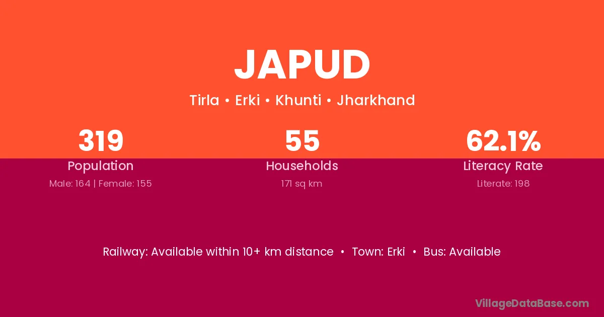 Japud village is located in the Torpa Subdivision of the Khunti district in Jharkhand .