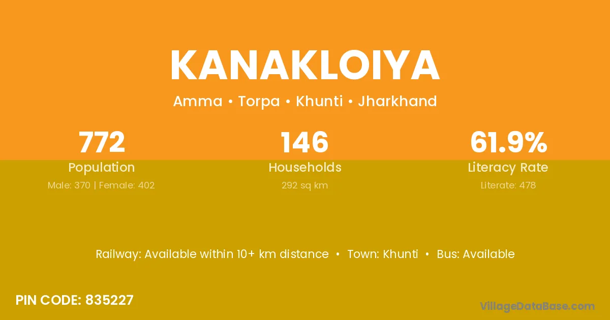 Khunti is the nearest town to Kanakloiya village for major economic activities