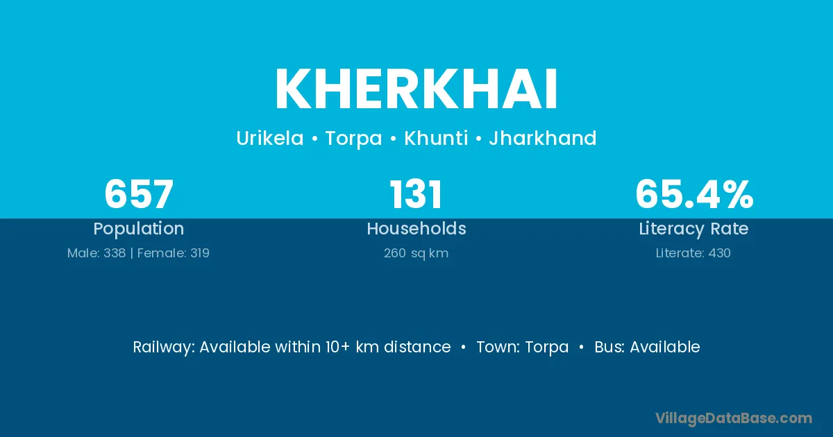 Kherkhai village has a total population of 657 people, of which 338 are males and 319 are females.