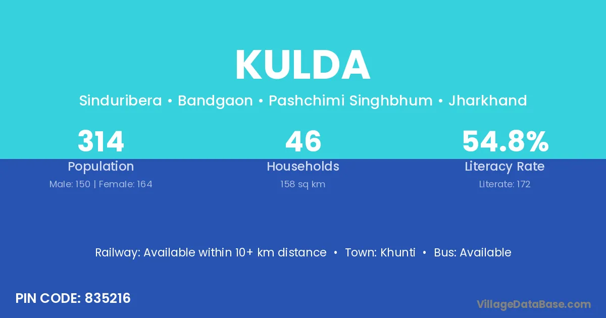 Khunti is the nearest town to Kulda village for major economic activities
