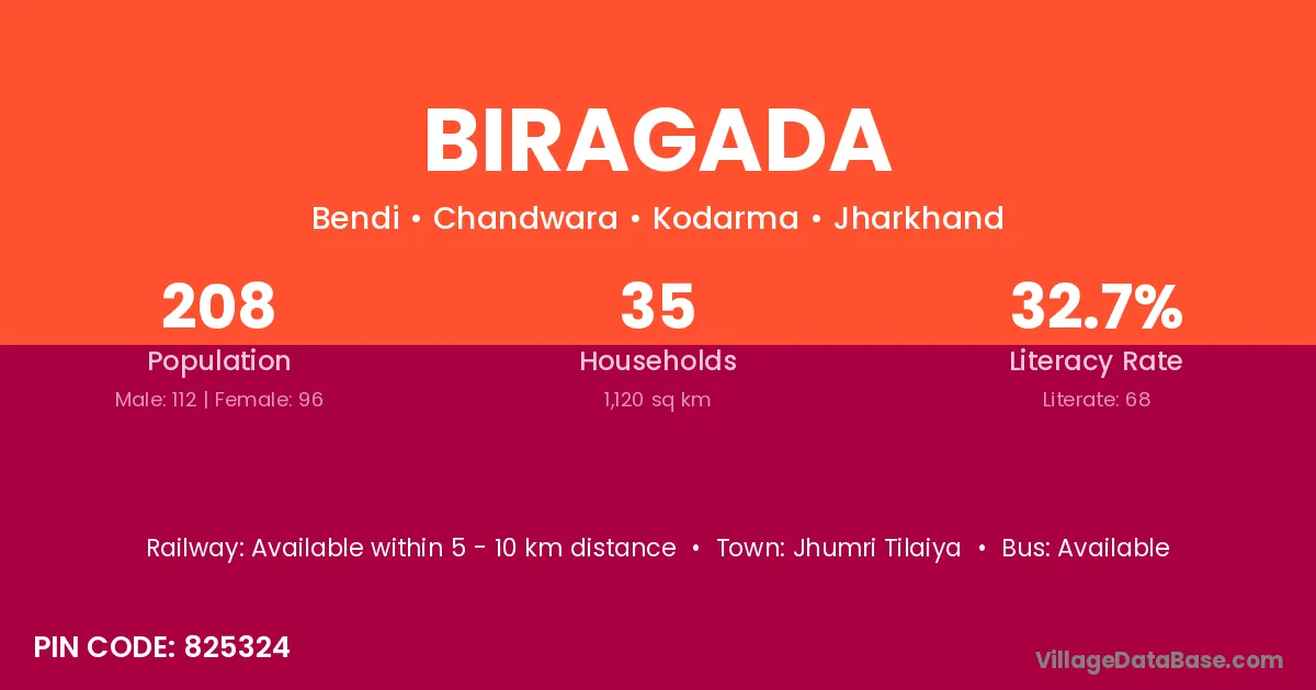Jhumri Tilaiya is the nearest town to Biragada village for major economic activities
