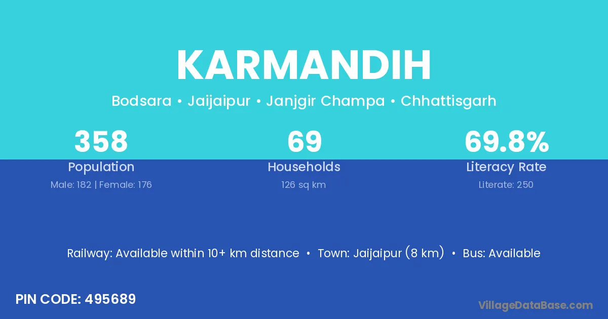 Karmandih village has a total population of 736 people, of which 336 are males and 400 are females.