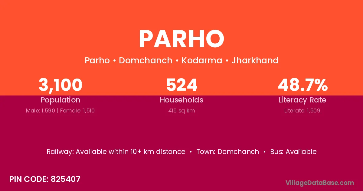 According to Census 2011 information, the village code of Parho village is 825407.