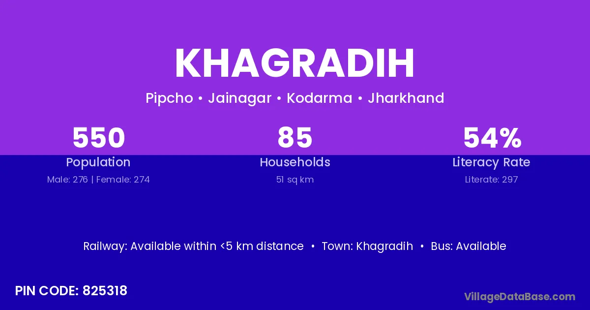 Khagradih village has a total population of 550 people, of which 276 are males and 274 are females.