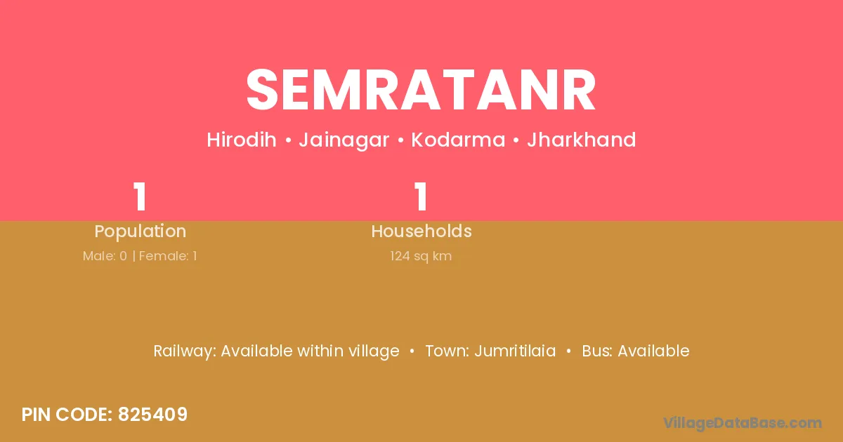 Semratanr village has a total population of 1 people, of which 0 are males and 1 are females.