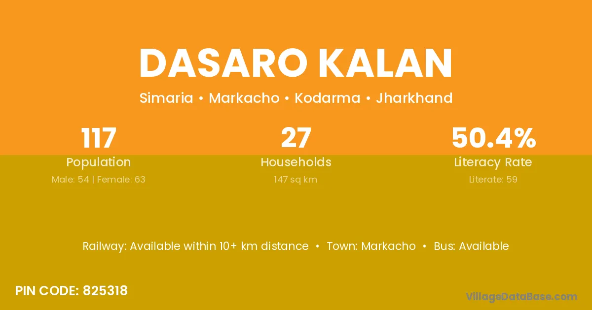 Dasaro Kalan village is located in the Markacho Subdivision of the Kodarma district in Jharkhand .