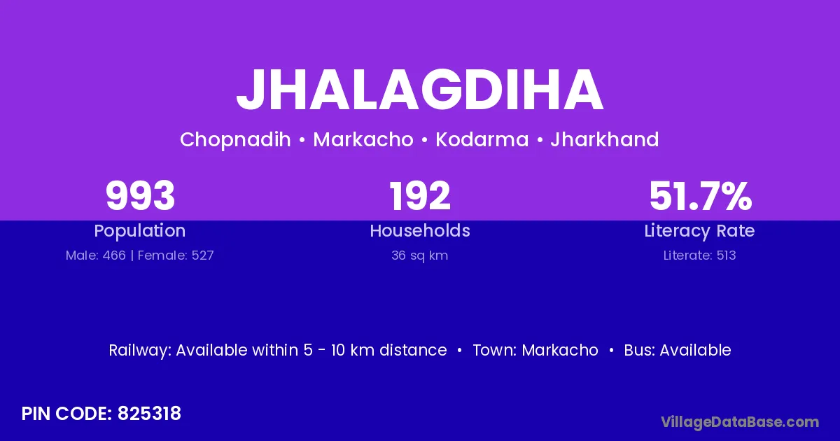 Jhalagdiha village has a total population of 993 people, of which 466 are males and 527 are females.