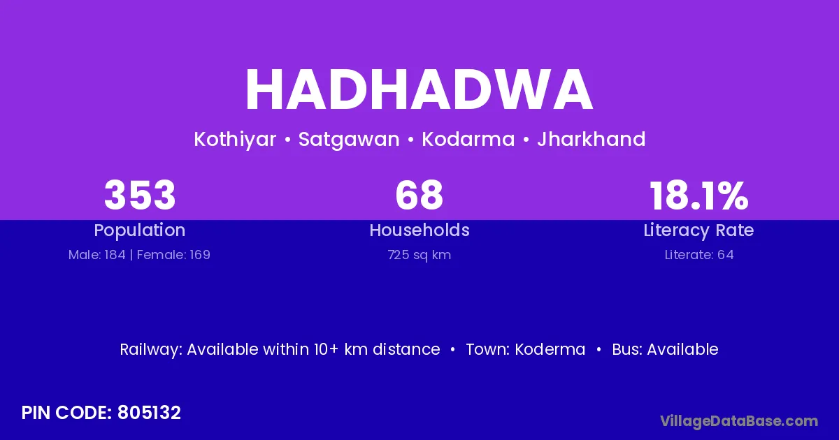 Koderma is the nearest town to Hadhadwa village for major economic activities