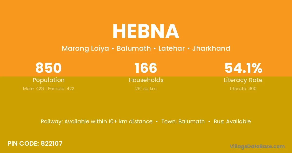 Hebna village has a total population of 850 people, of which 428 are males and 422 are females.