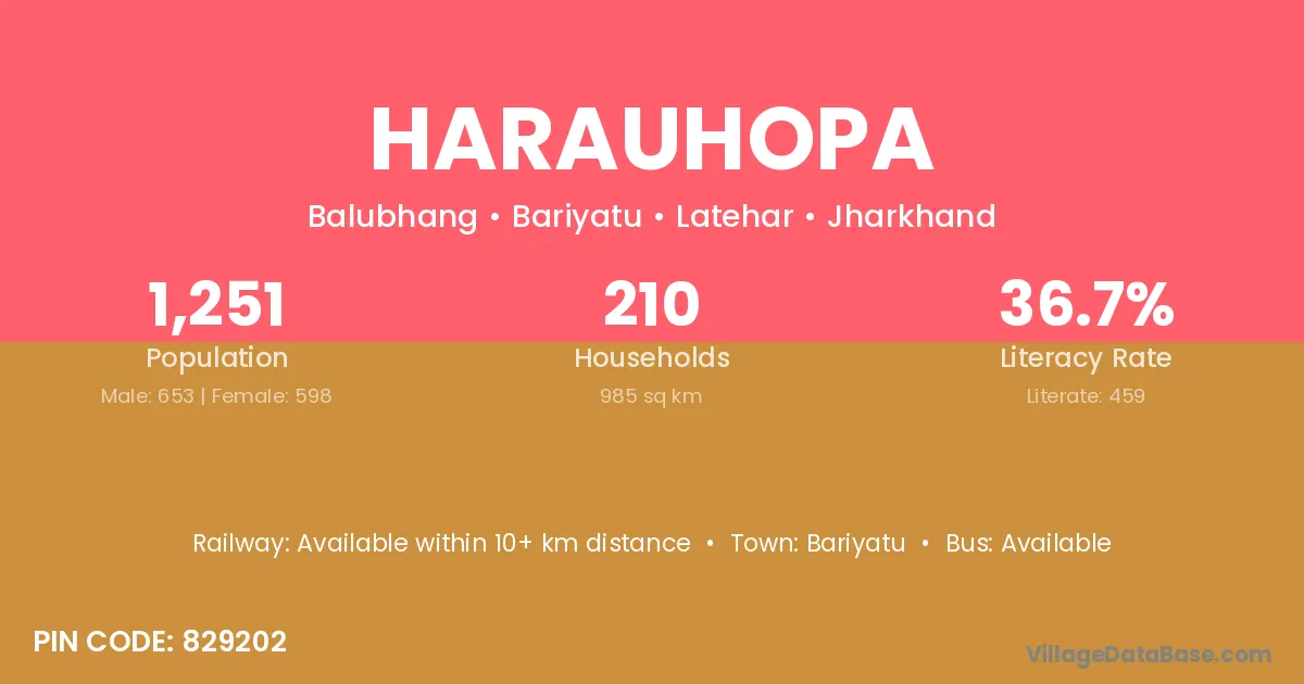 Harauhopa village has a total population of 1,251 people, of which 653 are males and 598 are females.