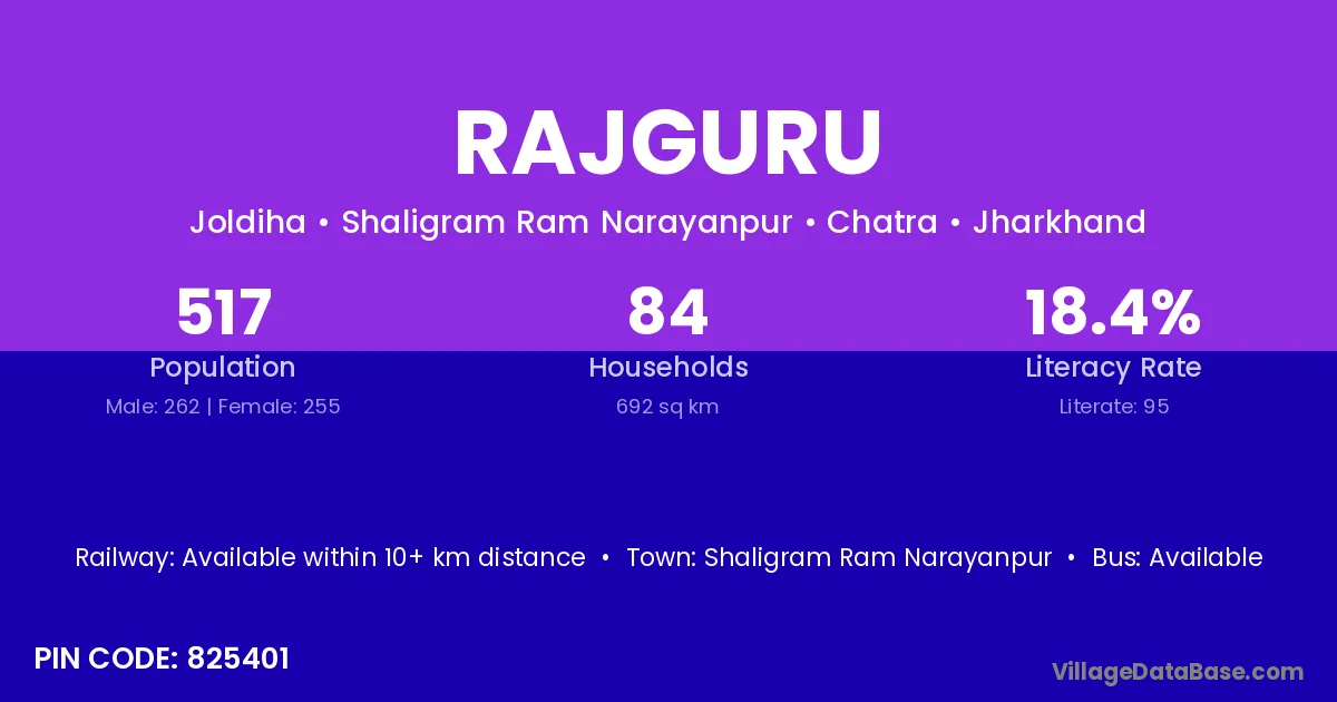 According to Census 2011 information, the village code of Rajguru village is 829202.
