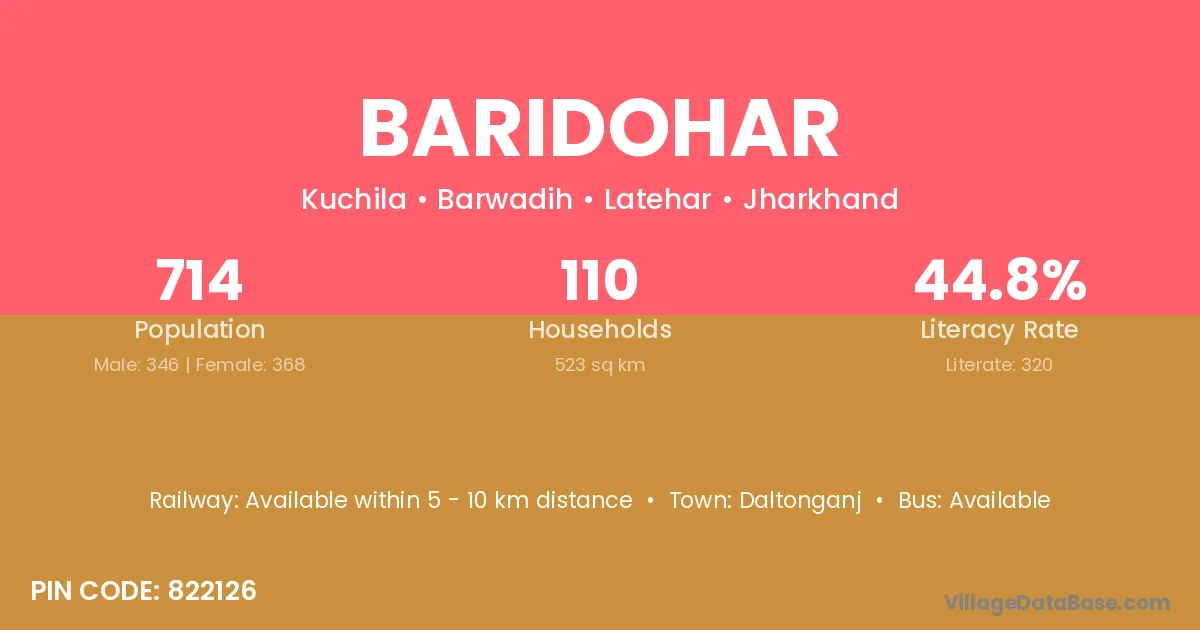 Daltonganj is the nearest town to Baridohar village for major economic activities