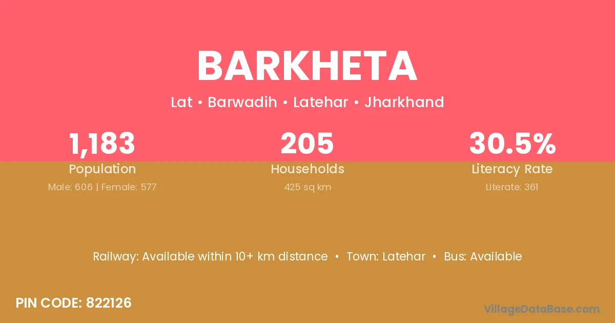 Barkheta village is located in the Barwadih Subdivision of the Latehar district in Jharkhand .
