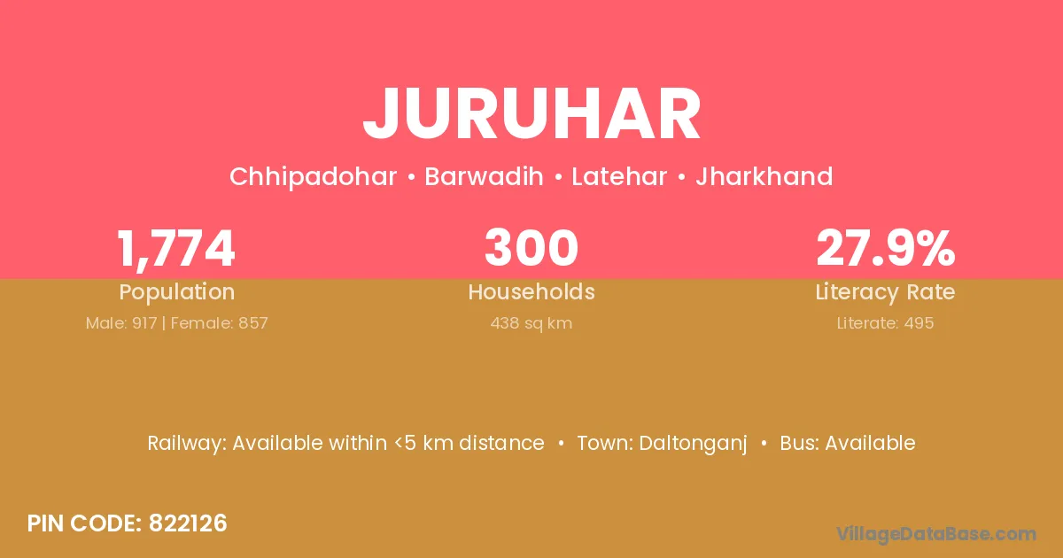 Daltonganj is the nearest town to Juruhar village for major economic activities