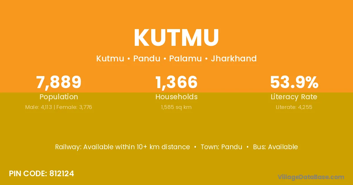The literacy rate of Kutmu village is 44.50%. Male literacy stands at 53.66% and female literacy at 34.66%.