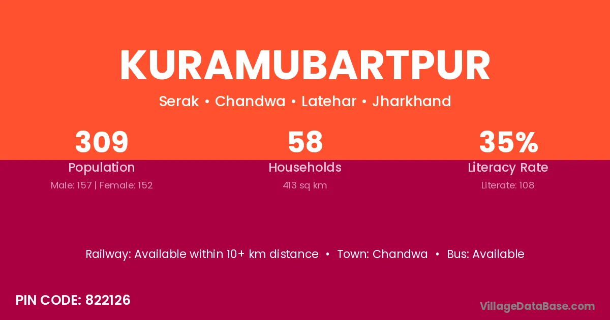 Kuramubartpur village has a total population of 309 people, of which 157 are males and 152 are females.