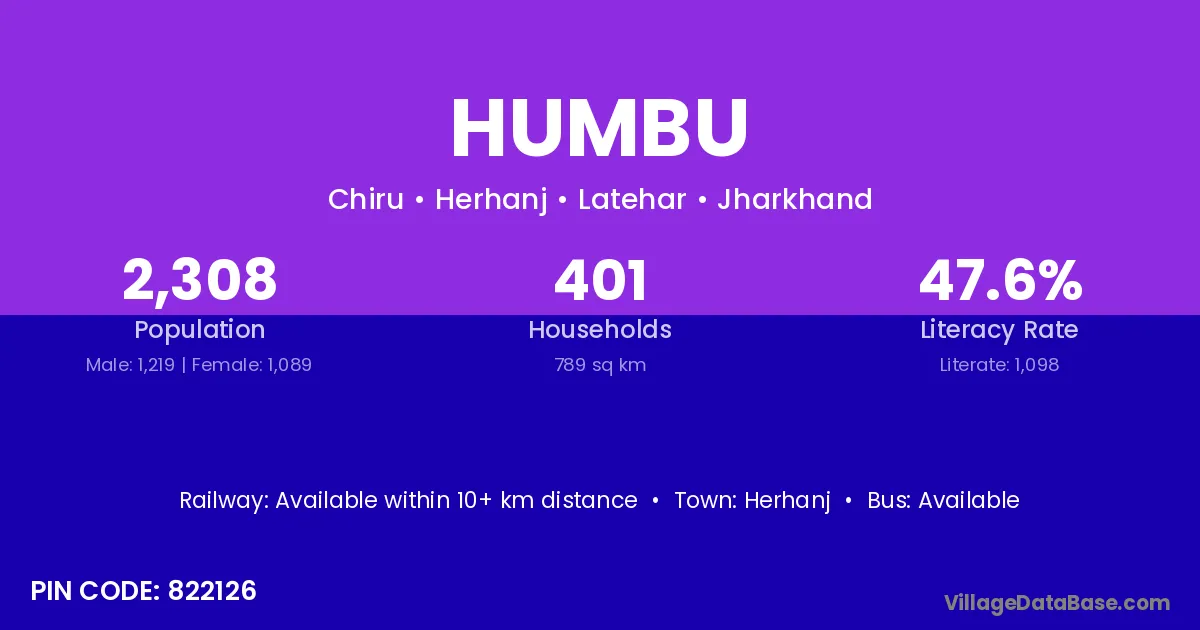 Humbu village is located in the Herhanj Subdivision of the Latehar district in Jharkhand .