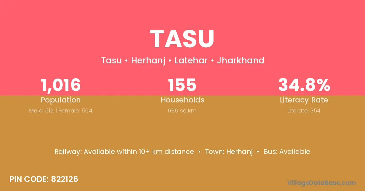 Tasu village is located in the Herhanj Subdivision of the Latehar district in Jharkhand .
