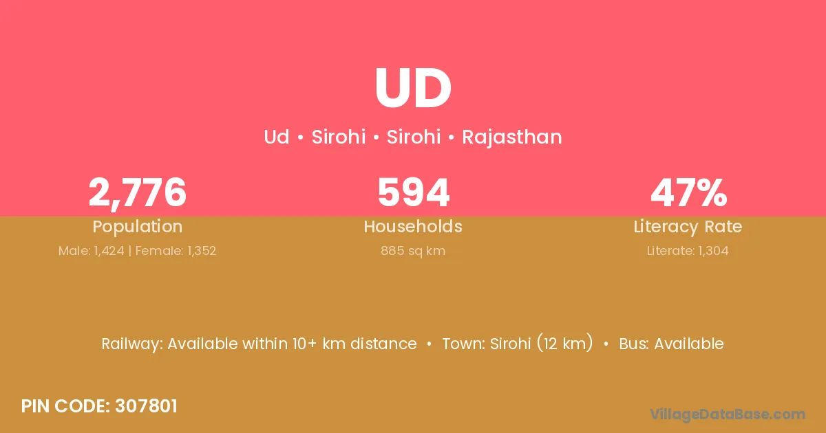 The literacy rate of Ud village is 35.16%. Male literacy stands at 45.00% and female literacy at 26.47%.