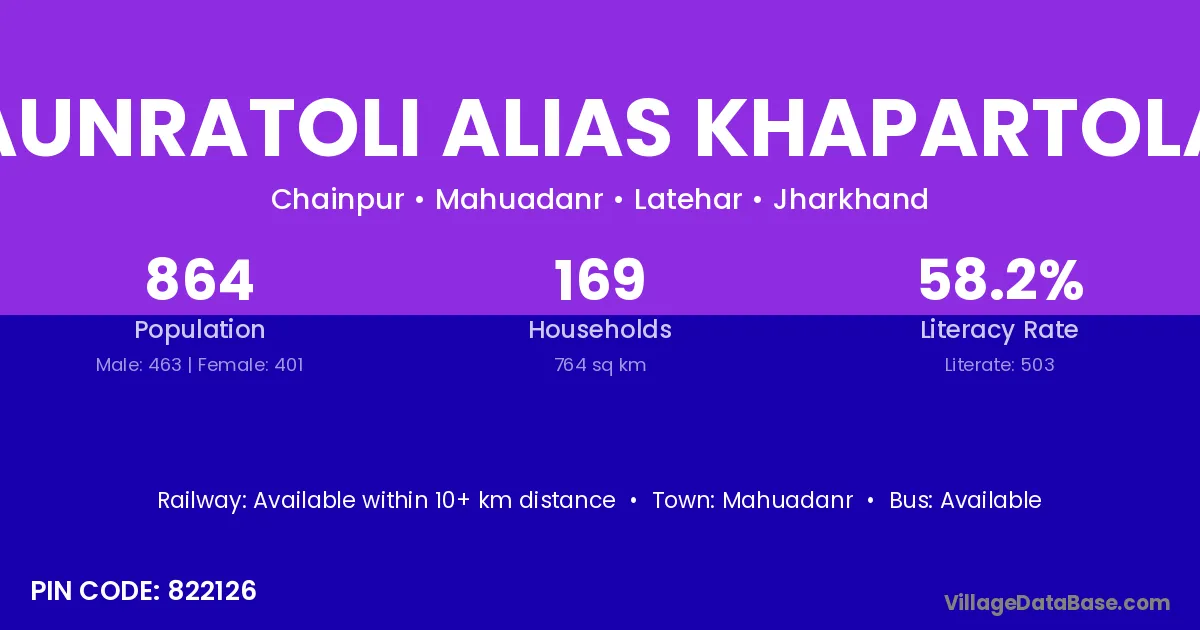 Aunratoli Alias Khapartola village has a total population of 864 people, of which 463 are males and 401 are females.
