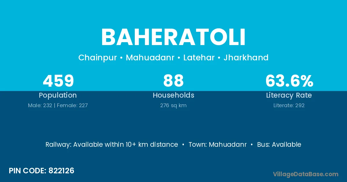 Mahuadanr is the nearest town to Baheratoli village for major economic activities
