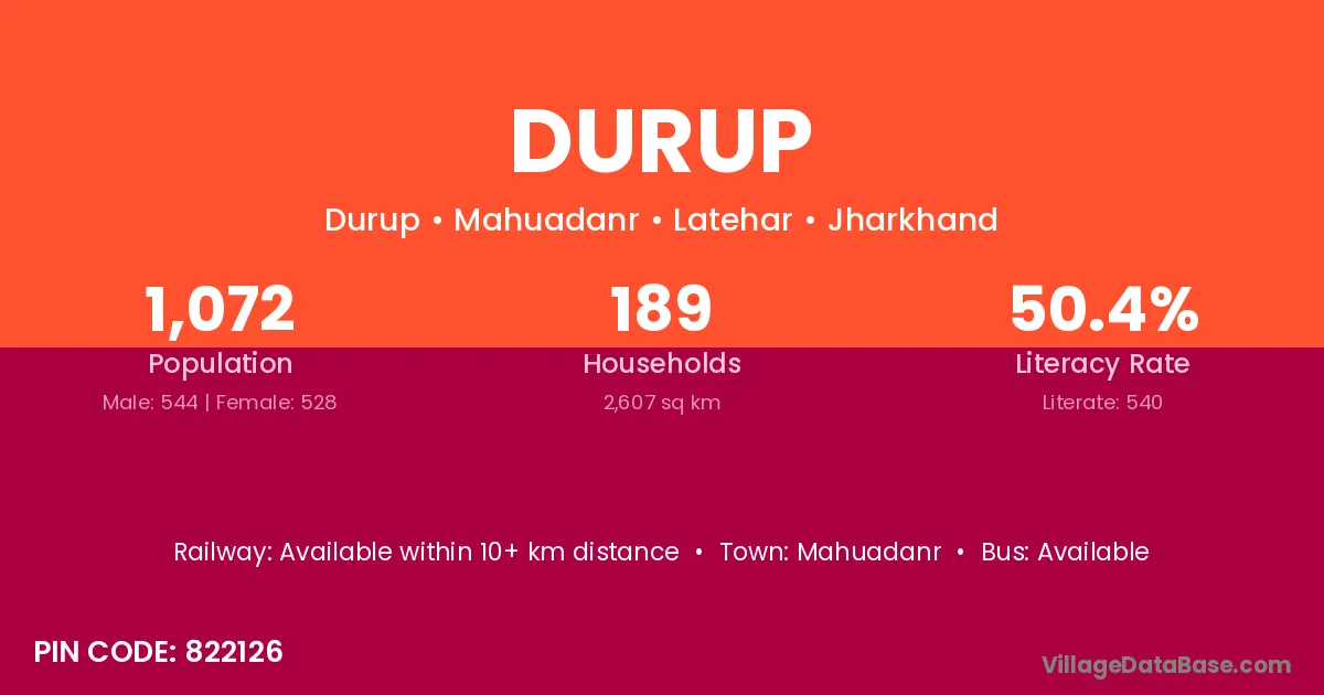 Durup village has a total population of 1,072 people, of which 544 are males and 528 are females.