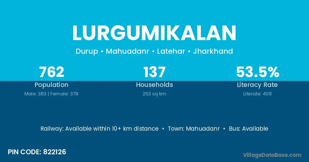 Lurgumikalan village has a total population of 762 people, of which 383 are males and 379 are females.