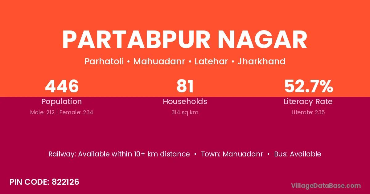 Partabpur Nagar village has a total population of 446 people, of which 212 are males and 234 are females.