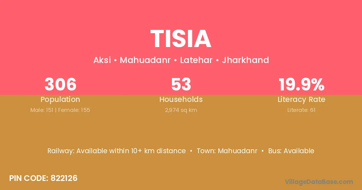 Mahuadanr is the nearest town to Tisia village for major economic activities
