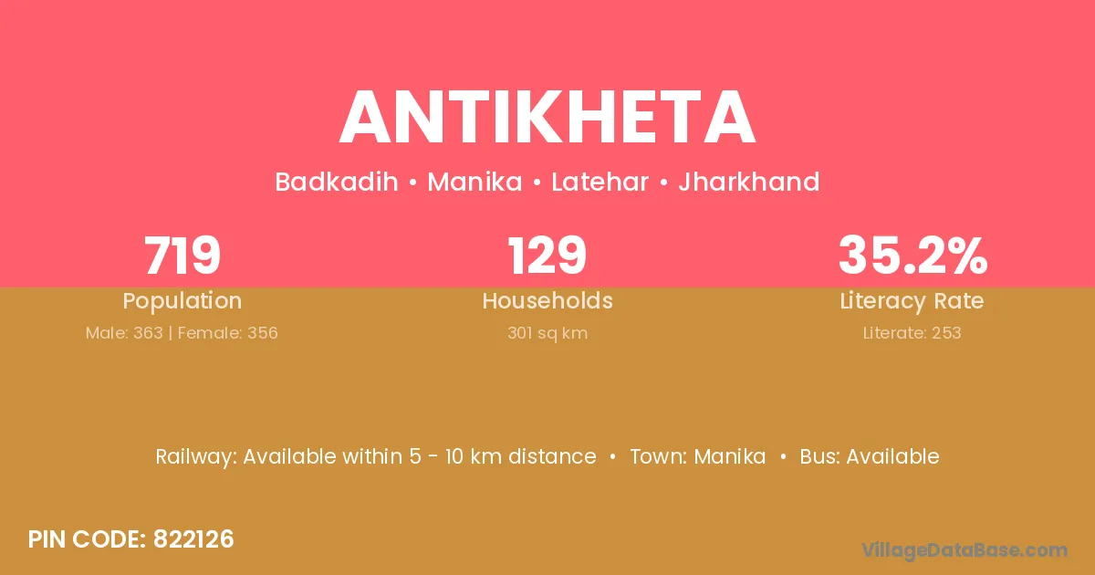 Antikheta village is located in the Manika Subdivision of the Latehar district in Jharkhand .