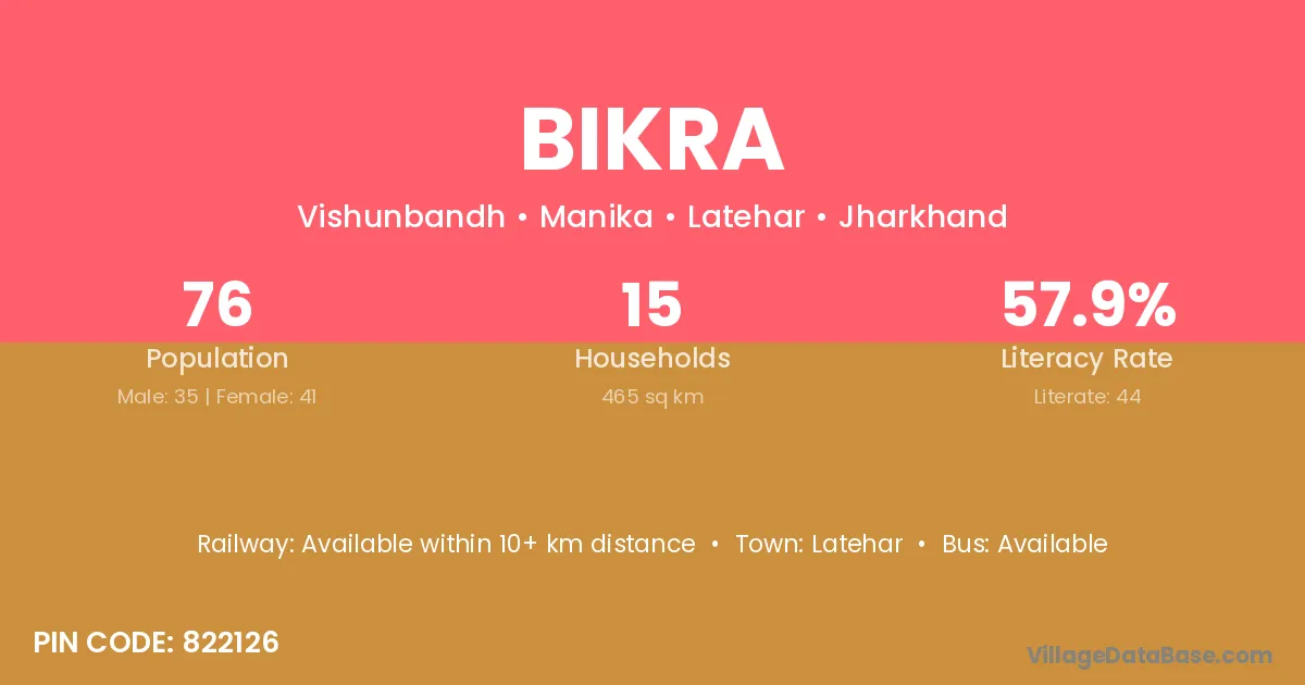 Latehar is the nearest town to Bikra village for major economic activities