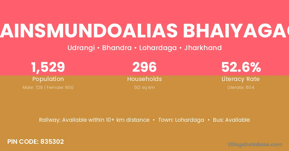 Bhainsmundoalias Bhaiyagaon village is located in the Bhandra Subdivision of the Lohardaga district in Jharkhand .