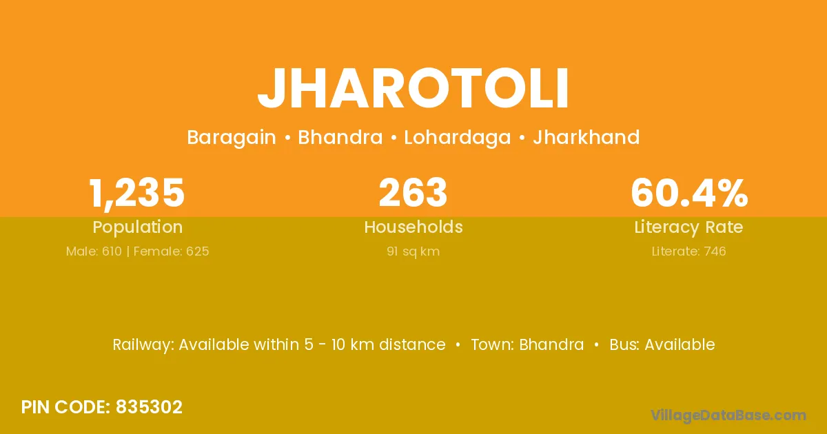 Jharotoli village has a total population of 1,235 people, of which 610 are males and 625 are females.