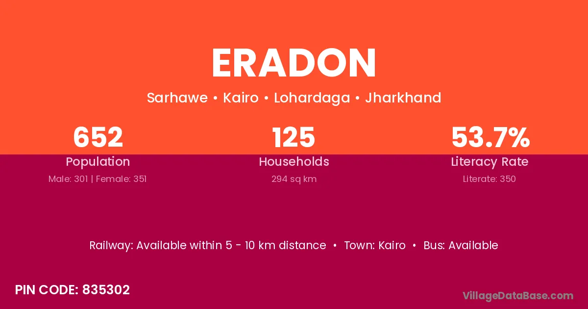 According to Census 2011 information, the village code of Eradon village is 835302.