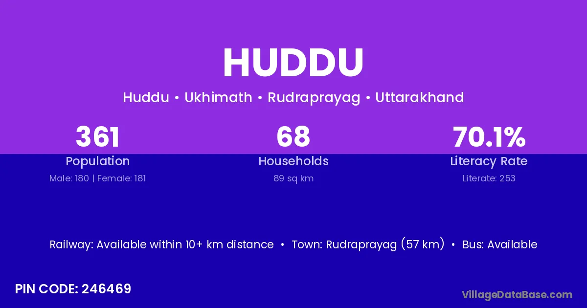 Huddu village has a total population of 1,247 people, of which 597 are males and 650 are females.