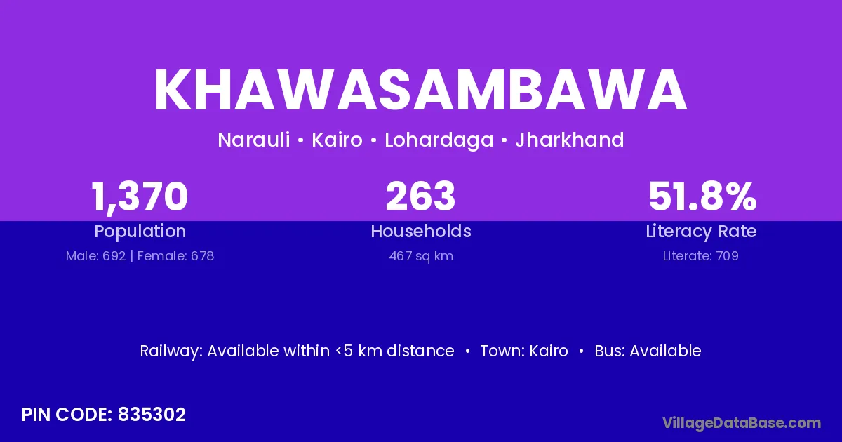 Khawasambawa village has a total population of 1,370 people, of which 692 are males and 678 are females.