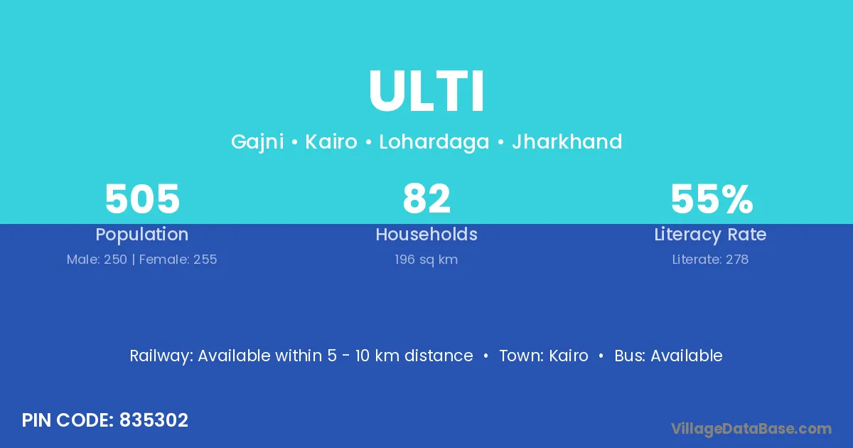 According to Census 2011 information, the village code of Ulti village is 835302.