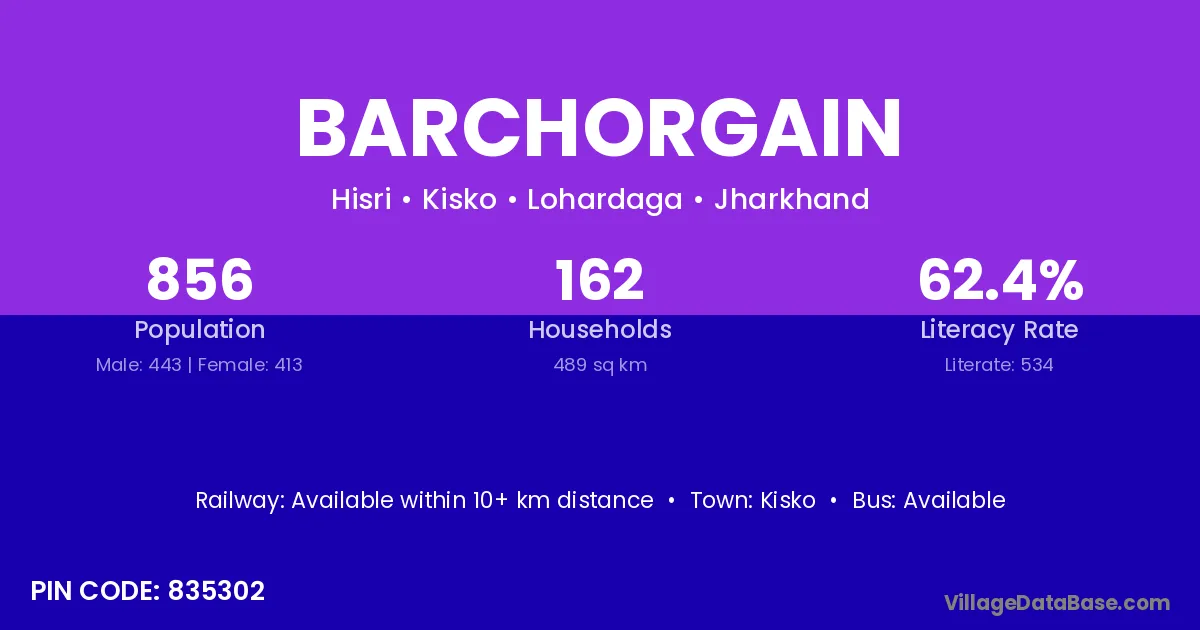 According to Census 2011 information, the village code of Barchorgain village is 835302.