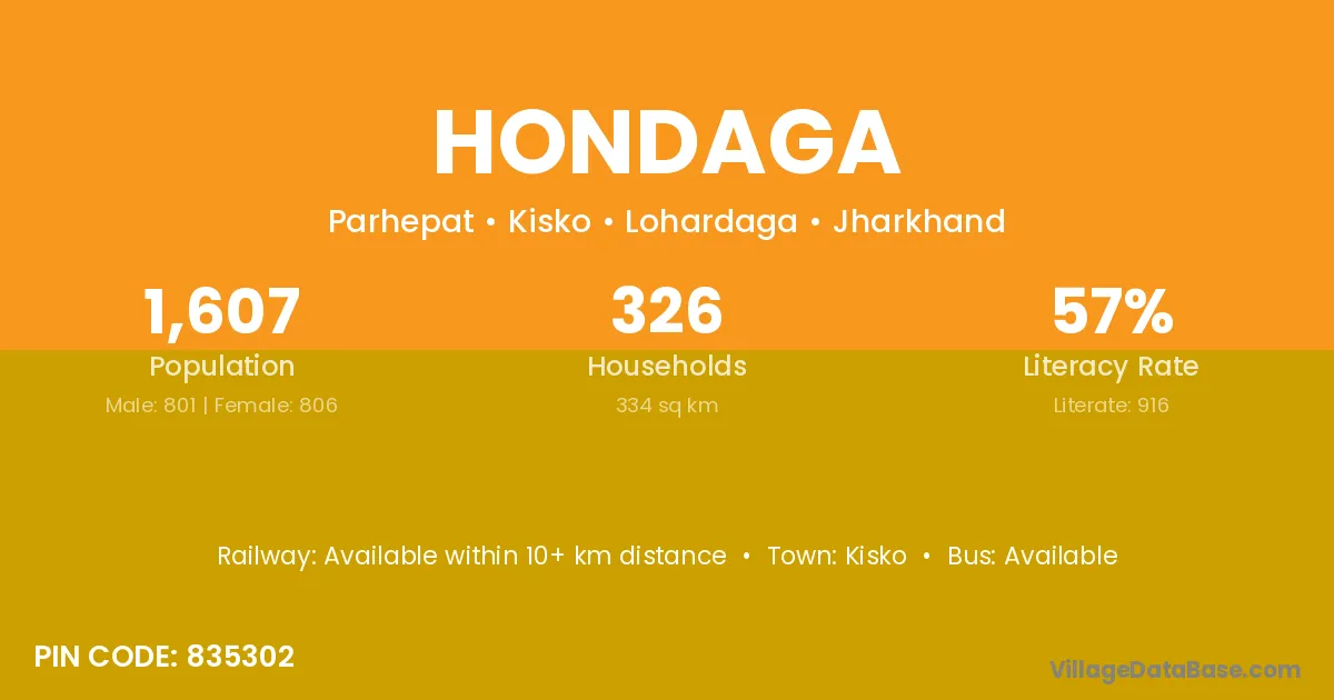 According to Census 2011 information, the village code of Hondaga village is 835302.