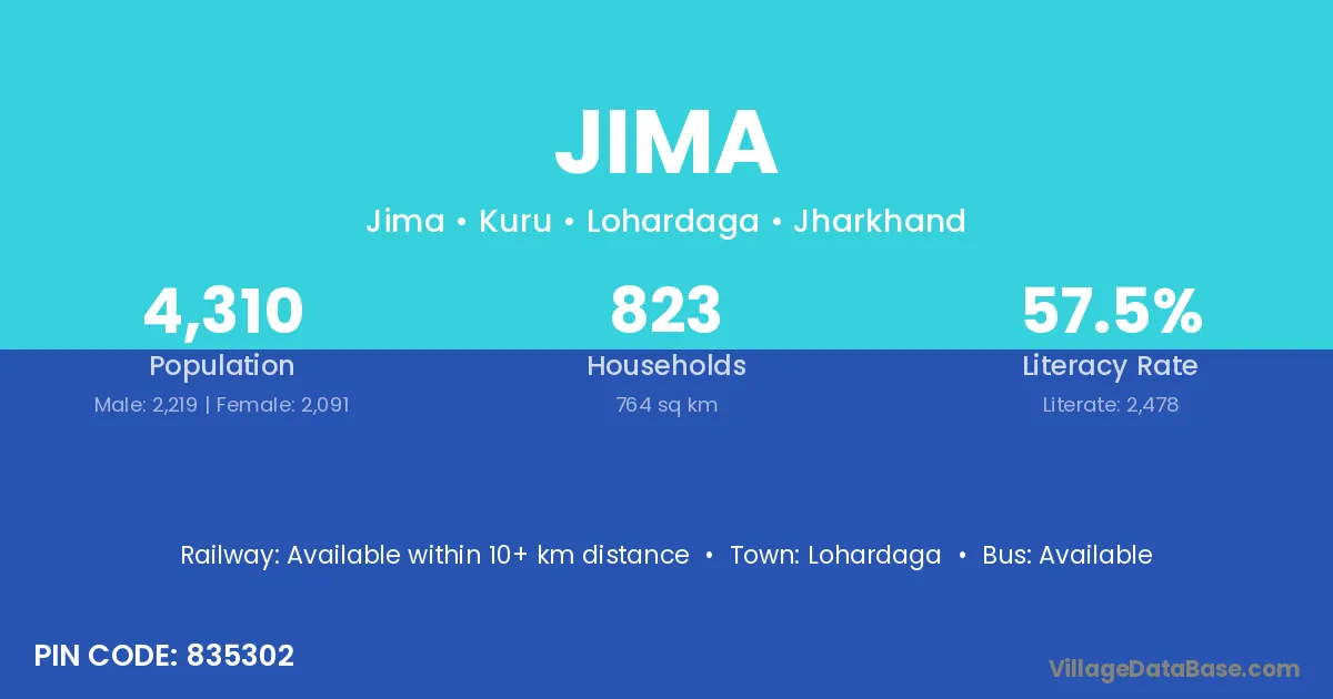 Jima village has a total population of 4,310 people, of which 2,219 are males and 2,091 are females.