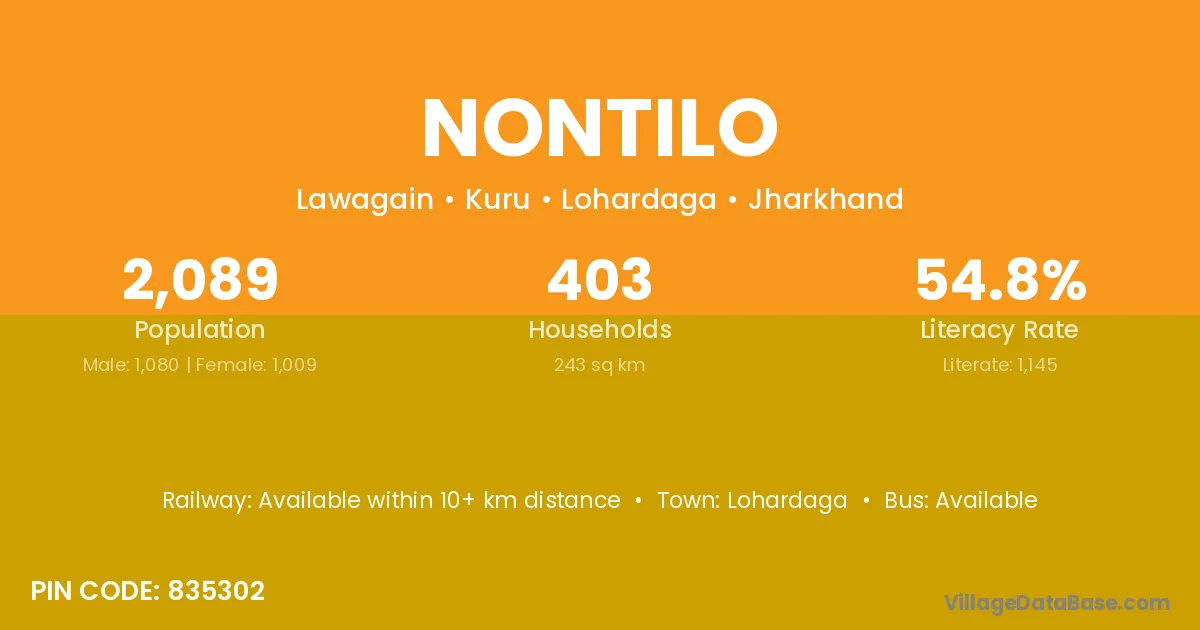 According to Census 2011 information, the village code of Nontilo village is 835302.