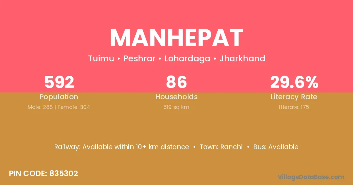 Ranchi is the nearest town to Manhepat village for major economic activities