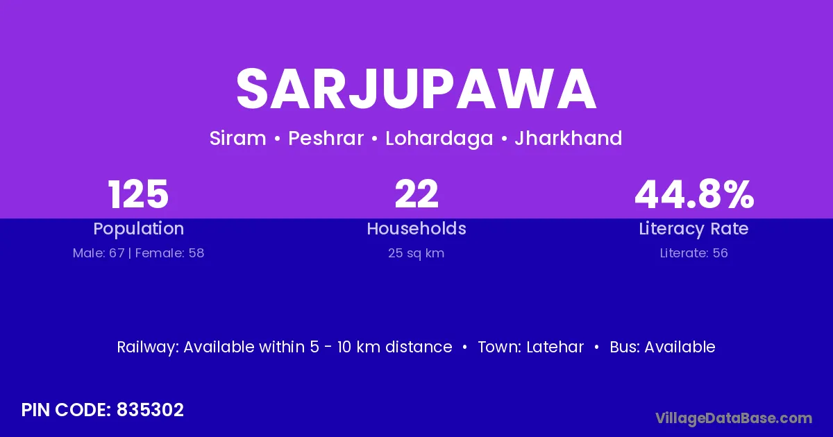 Sarjupawa village has a total population of 125 people, of which 67 are males and 58 are females.