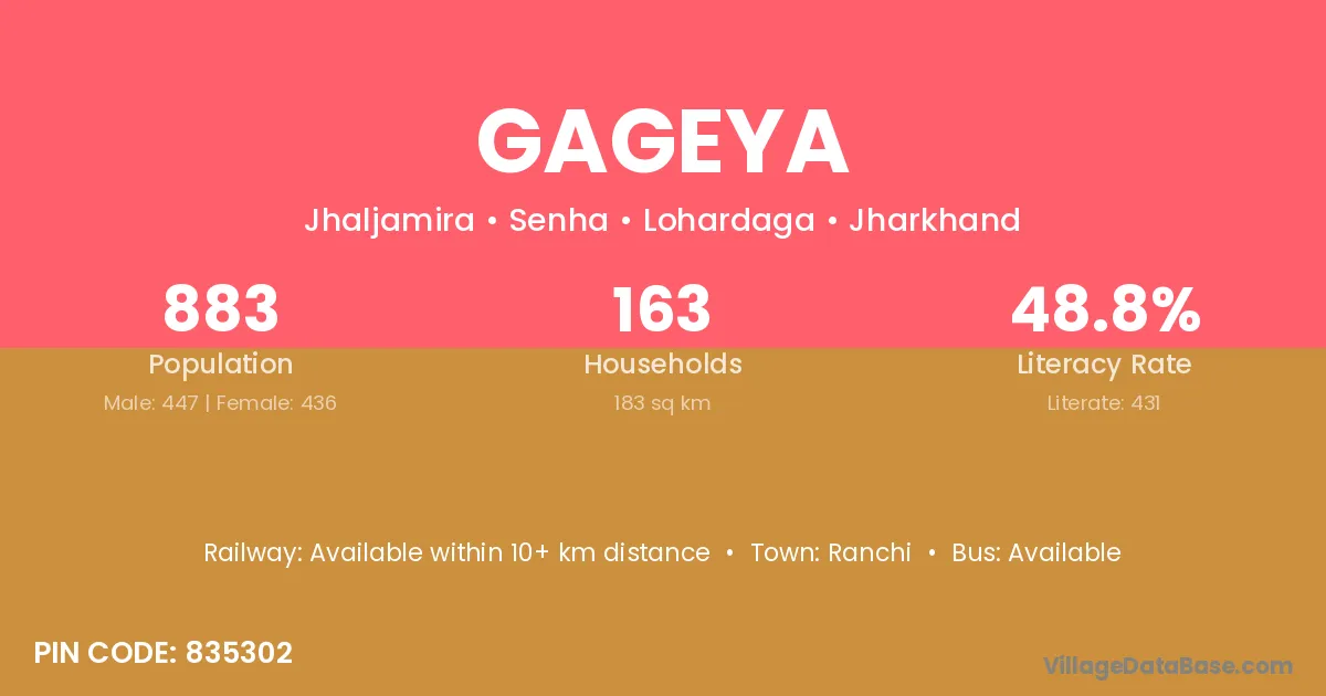 Gageya village is located in the Senha Subdivision of the Lohardaga district in Jharkhand .