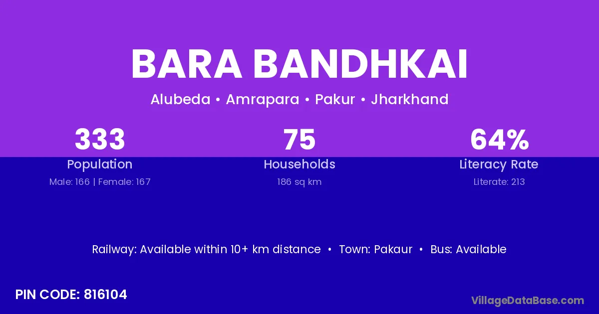 Pakaur is the nearest town to Bara Bandhkai village for major economic activities