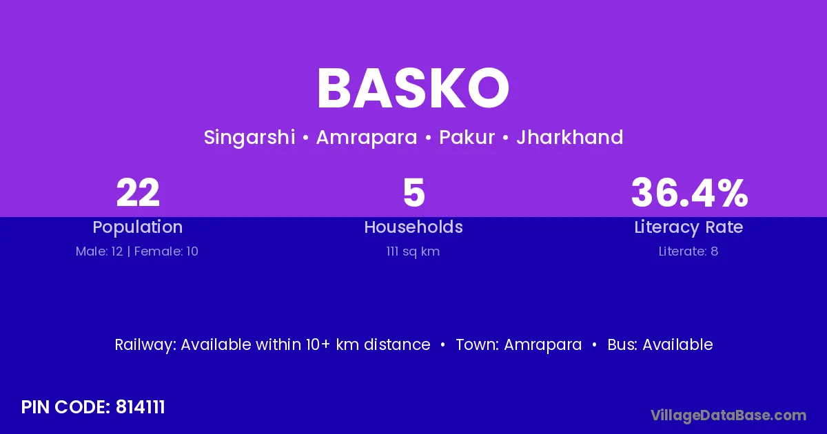 Basko village has a total population of 22 people, of which 12 are males and 10 are females.