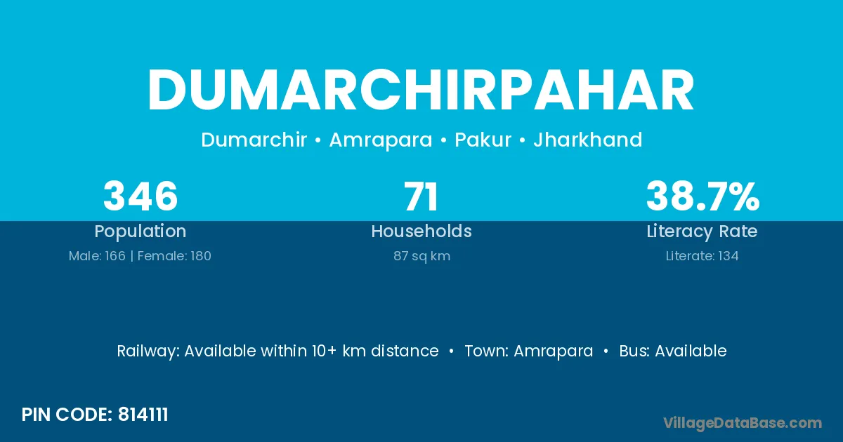 Dumarchirpahar village has a total population of 346 people, of which 166 are males and 180 are females.