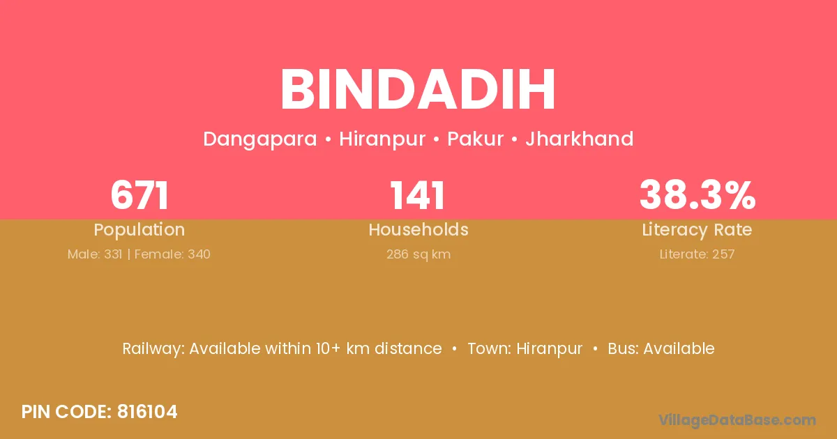 Hiranpur is the nearest town to Bindadih village for major economic activities