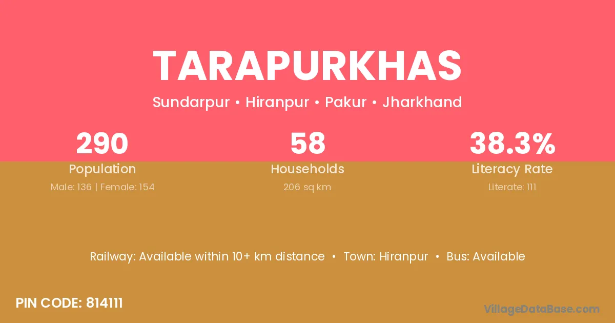 Tarapurkhas village has a total population of 290 people, of which 136 are males and 154 are females.
