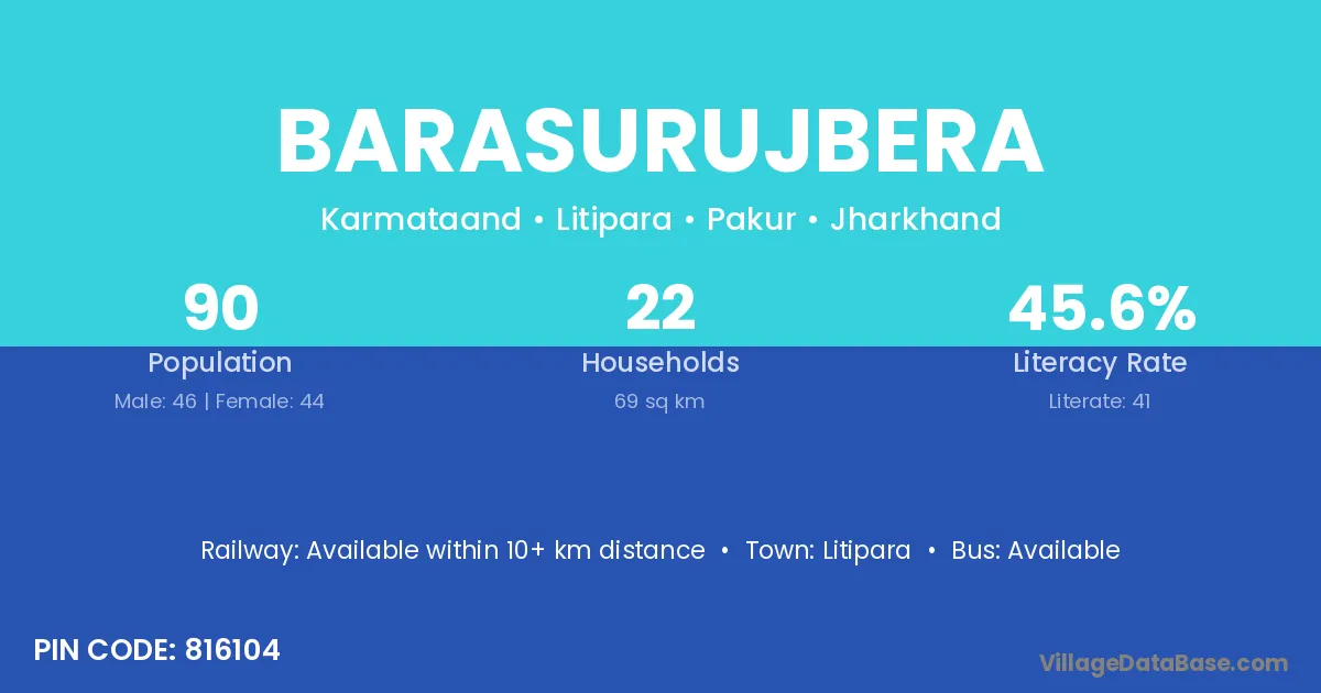 Barasurujbera village has a total population of 90 people, of which 46 are males and 44 are females.